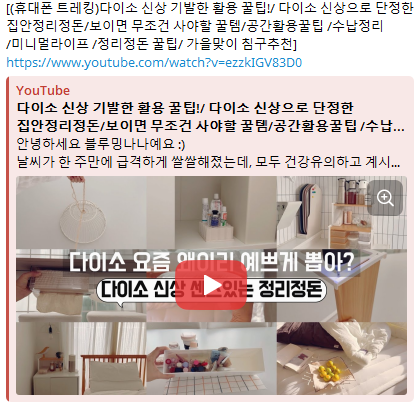 유튜브 게시물의 실시간 이슈를 텔레그램과 같은 채널로 빠르게 받으실 수 있습니다.